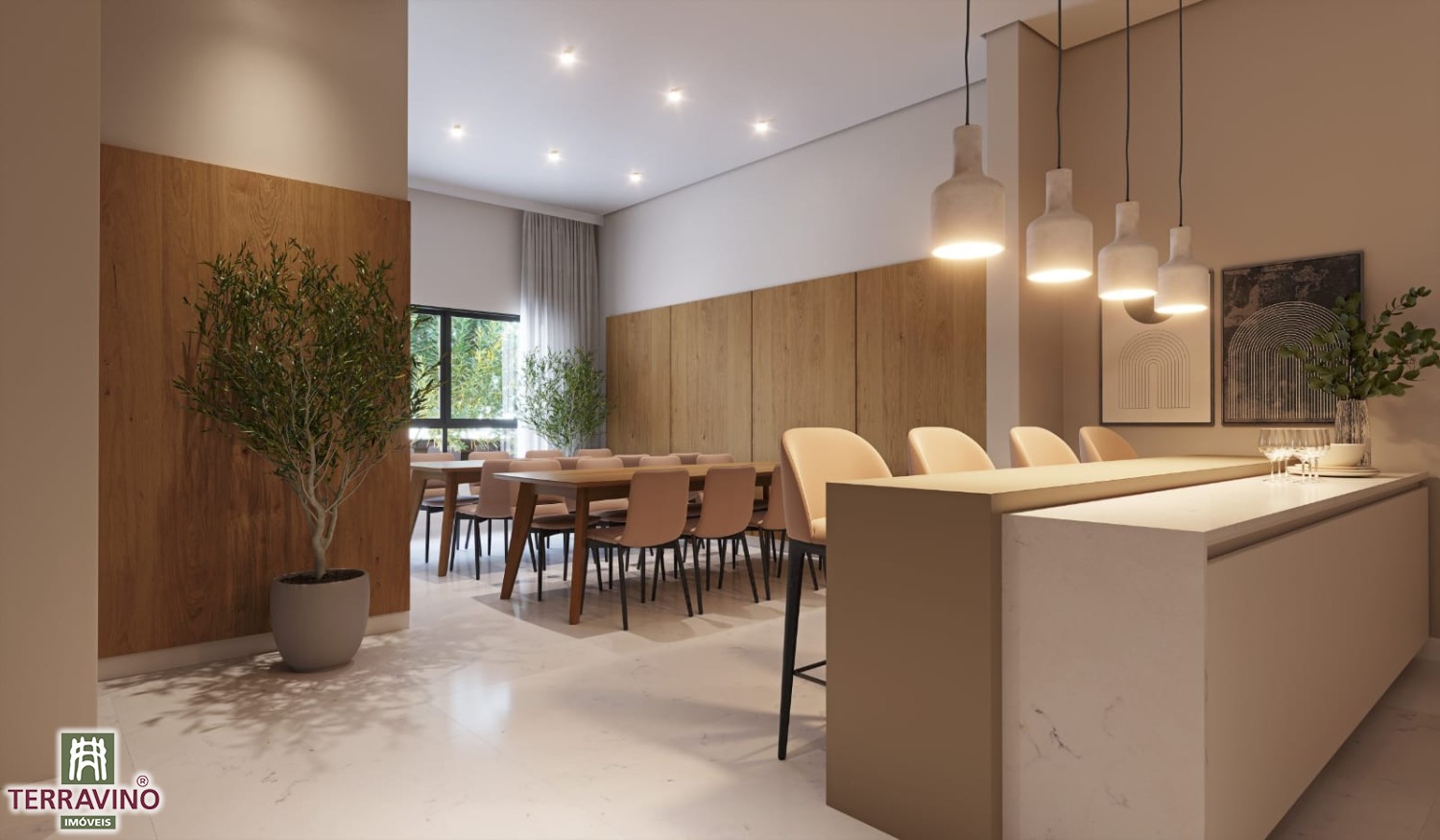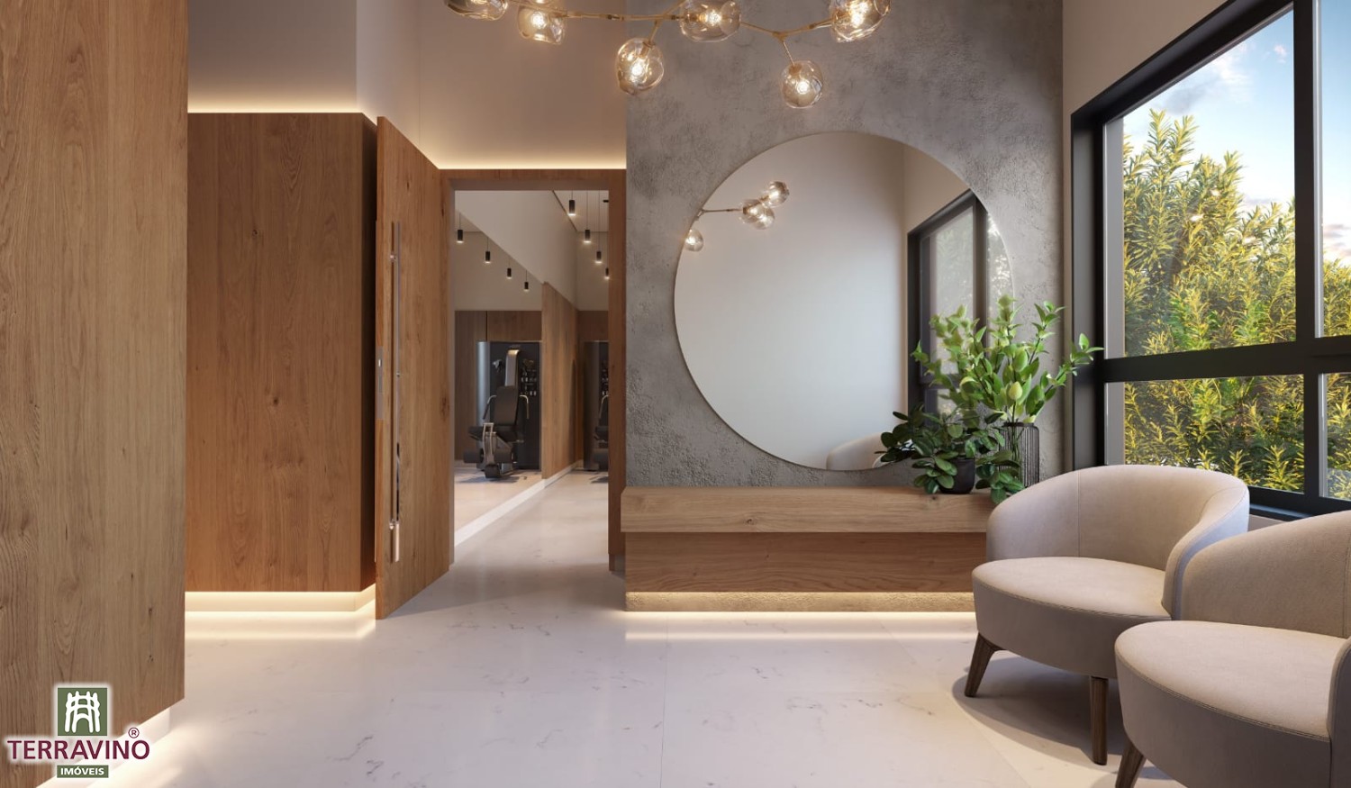 * Salão de festas e academia mobiliados, localizados próximos ao hall de entrada;