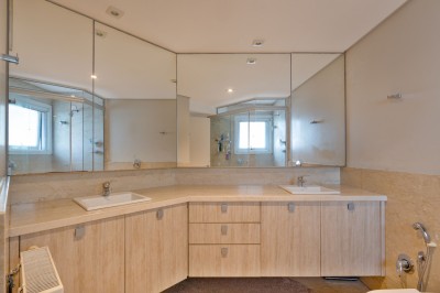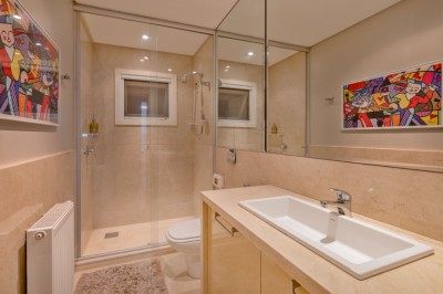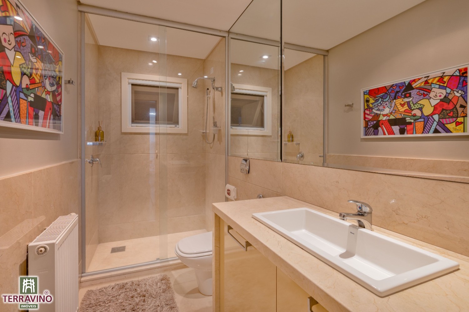 Espera pronta para calefação, com radiadores instalados nos dois banheiros.