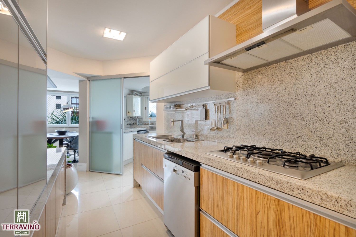 Cozinha e ambientes integrados.