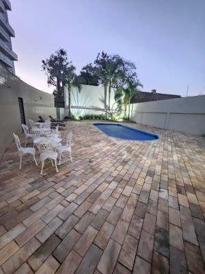 Condomínio com hall de entrada, salão de festas , piscina e elevador.