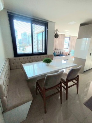 Ficam no imóvel os móveis planejados, eletros e embutidos, cortinas e aquecedor de água à gás.