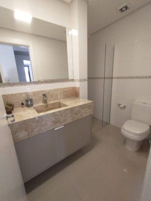 Porcelanato nas áreas sociais, piso laminado na área íntima, medidores de água e gás individuais, rebaixe em gesso.