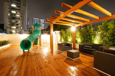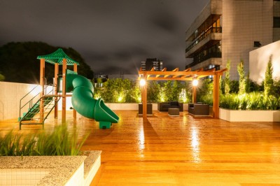 Possui 4 elevadores, sendo 1 exclusivo para serviço, edifício de esquina, sistema de monitoramento de câmeras, guarita, revestimento externo em pastilha cerâmica, salão de festas e hall mobiliados, salão de festas integrado com o terraço e sacada, captação de água de chuva, gerador para atender a iluminação das áreas comuns e academia.