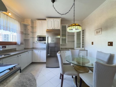 O imóvel conta com 95m² privativos, mobiliado e com os eletrodomésticos, pronto para morar conta com sala de estar, cozinha, área de serviço separada com aquecedor de água e churrasqueira.