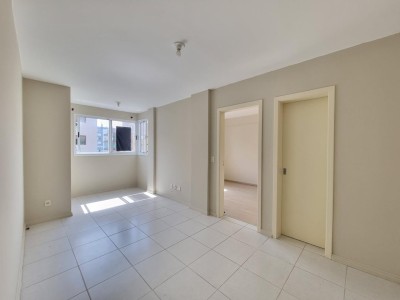 Apartamento com 1 dormitório, sala de estar e jantar integrada, churrasqueira, área de serviço e cozinha separadas, banheiro social e box de garagem.