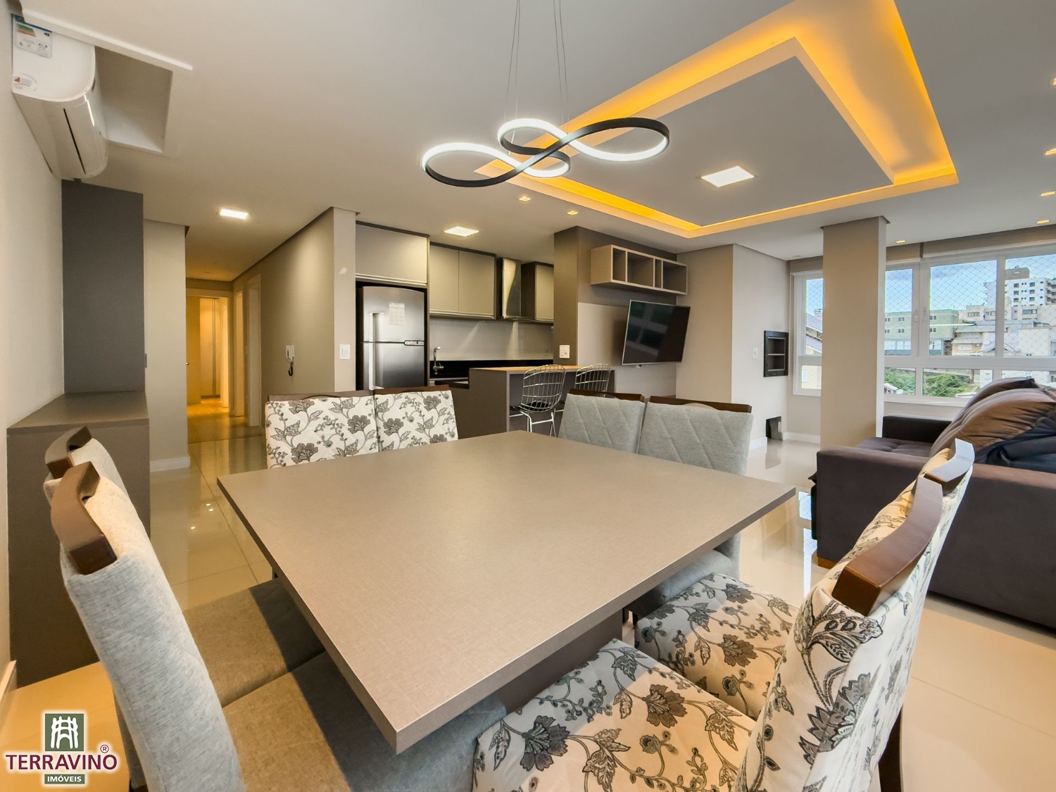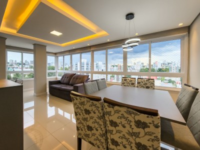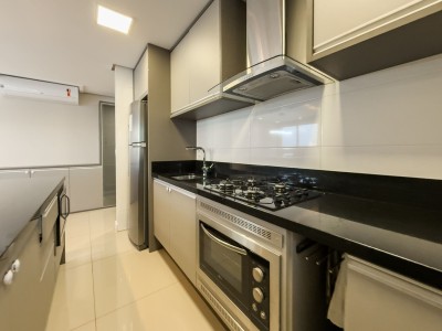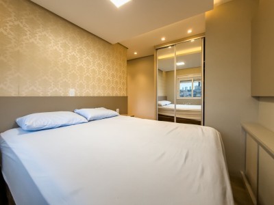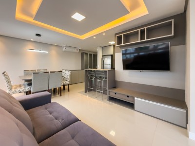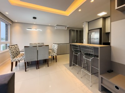 APARTAMENTO MOBILIADO, Dois dormitórios, sendo 1 suíte, 77 m² privativos, Posição solar Oeste e Sul, Sala de estar, Sala de Jantar, 2 box de garagem, Churrasqueira, Sacada integrada, Piso laminado, Piso porcelanato, Portão eletrônico, Interfone e elevador.