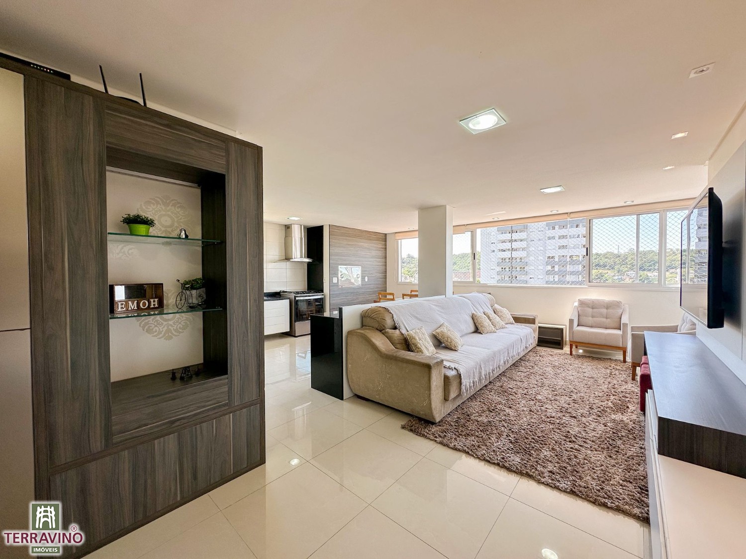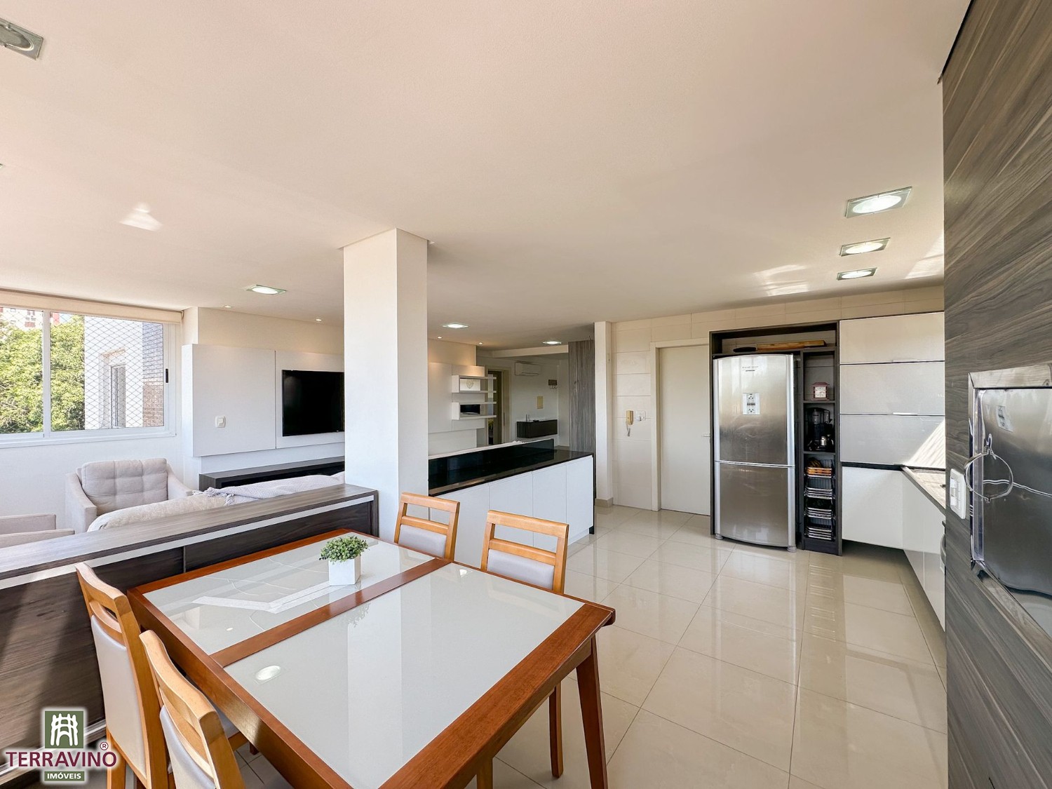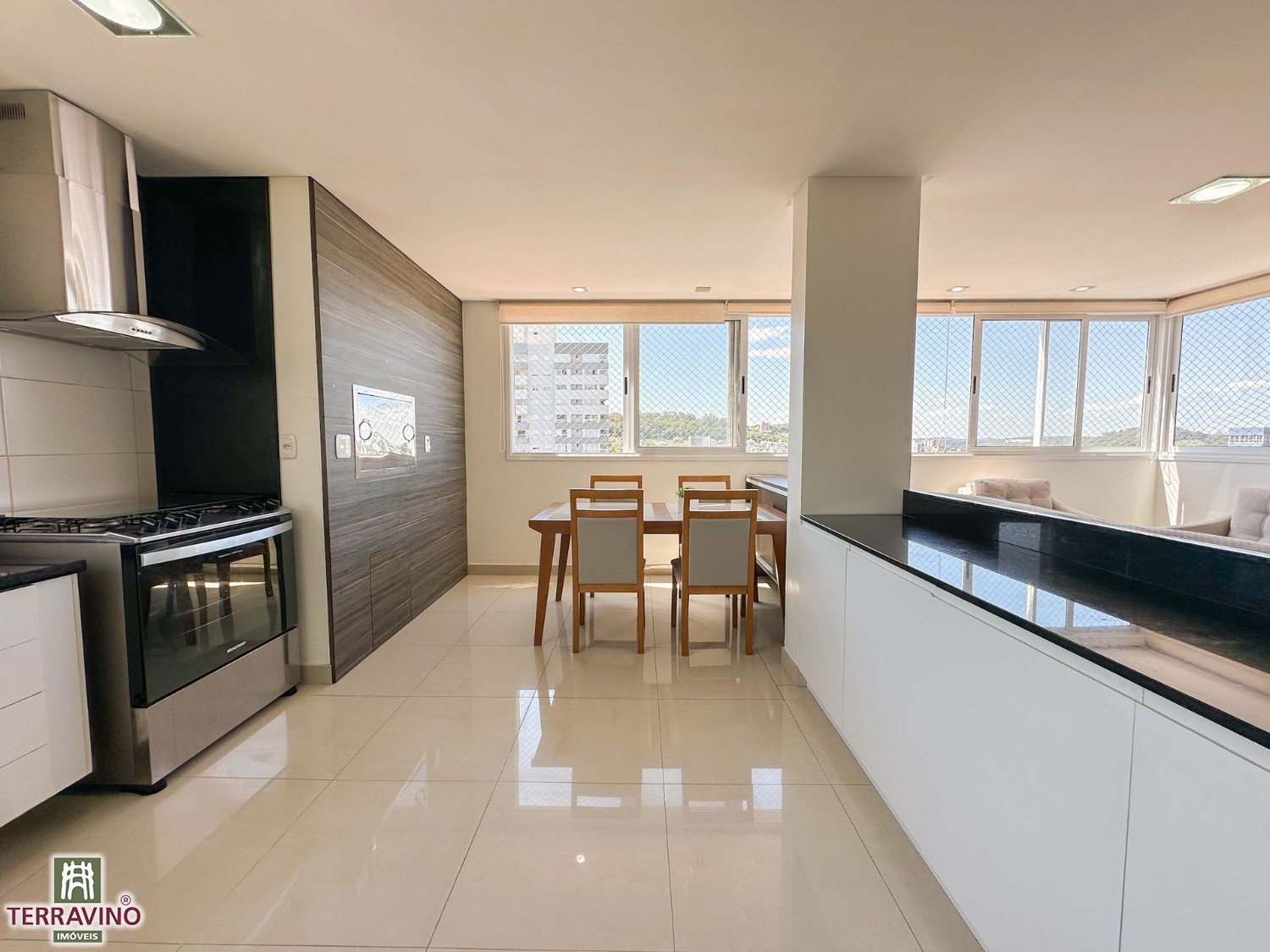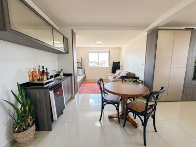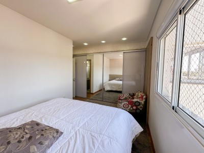 Apartamento semi-mobiliado de 3 dormitórios, sendo 1 suíte, sala e cozinha integradas com churrasqueira´área de serviço separada, Vista definitiva na orientação Norte.