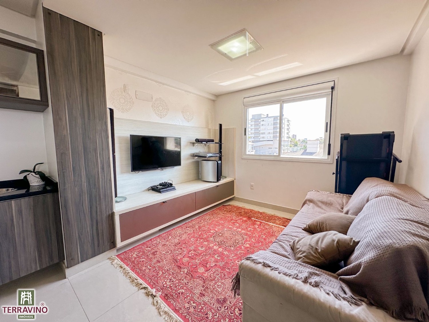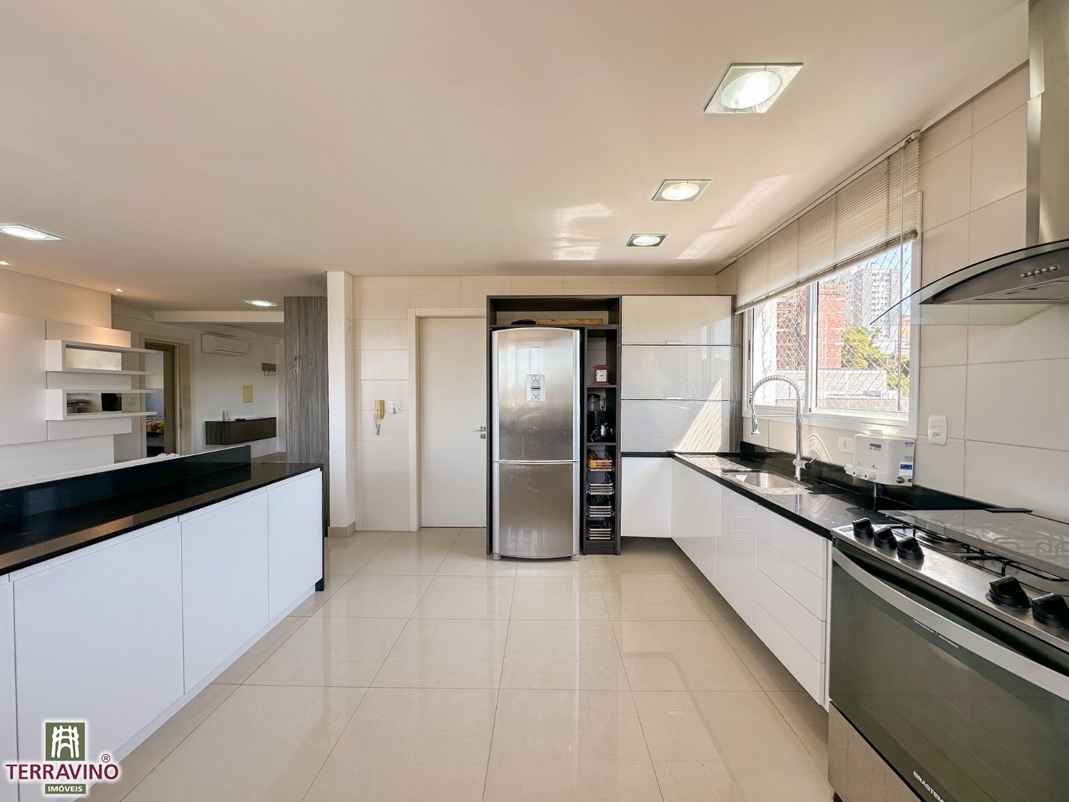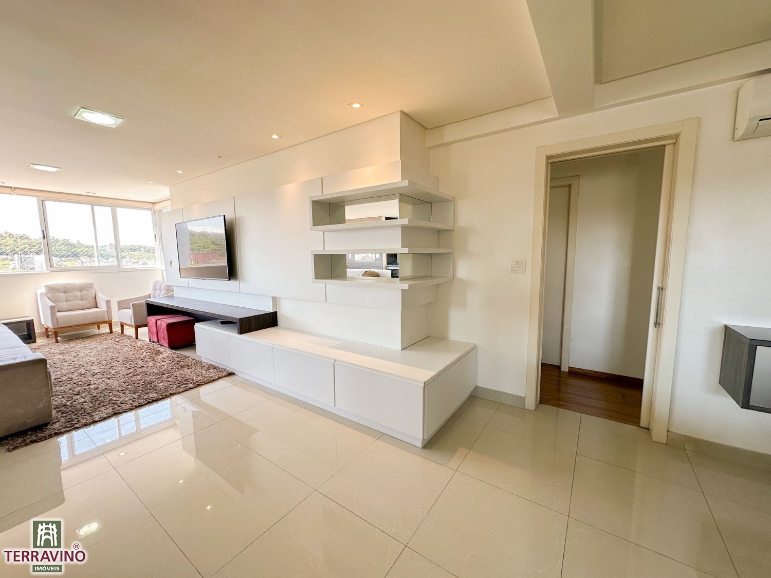 Apartamento semi-mobiliado de 3 dormitórios, sendo 1 suíte, sala e cozinha integradas com churrasqueira´área de serviço separada, Vista definitiva na orientação Norte.