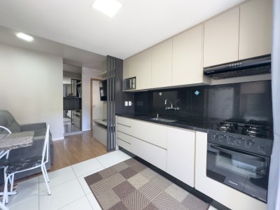São 50m² bem distribuídos, com sala de estar e cozinha integrados proporcionando conforto e bem estar, sacada aberta com churrasqueira, banheiro social e vaga de garagem coberta.