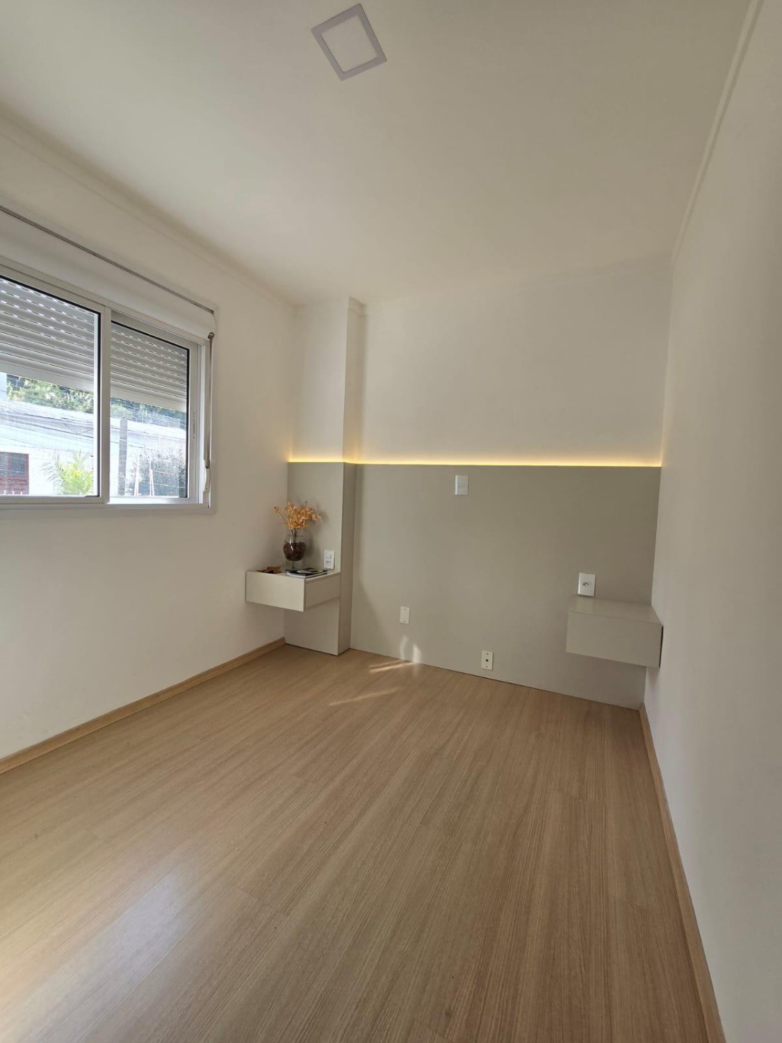 Piso em porcelanato e laminado nos quartos