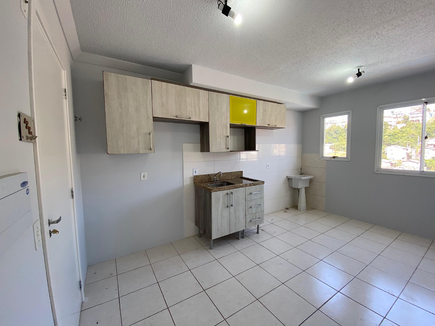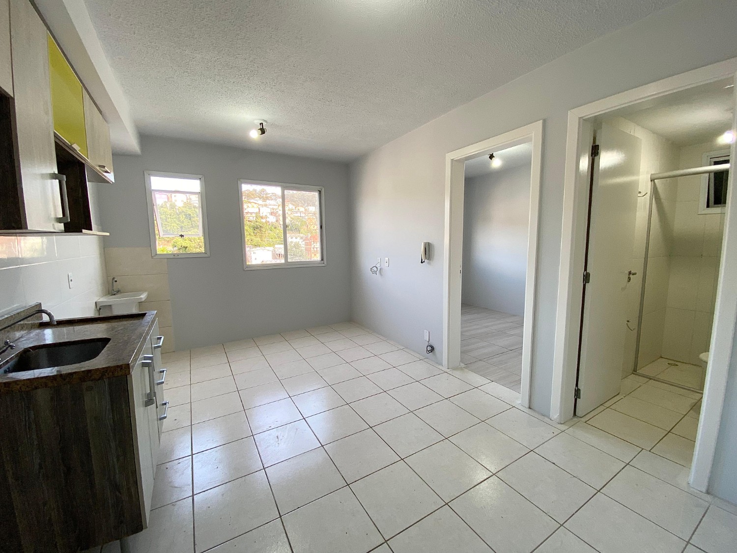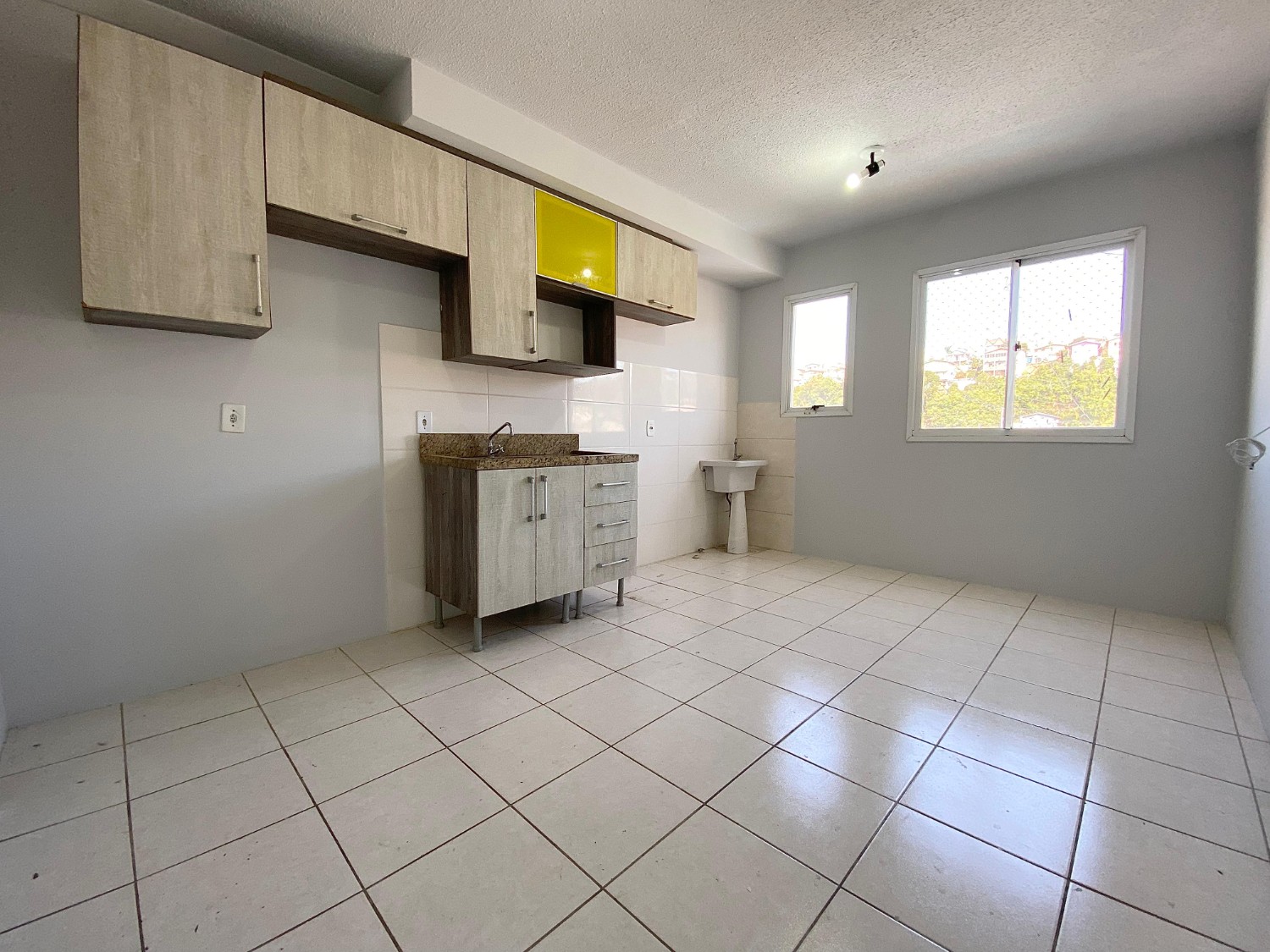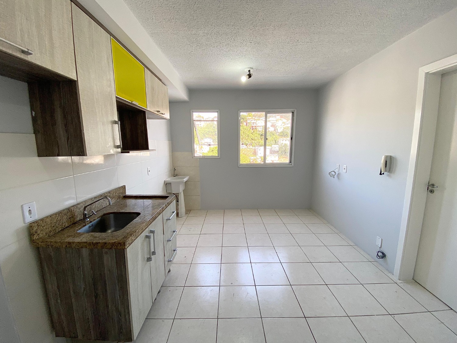 Sala e cozinha integradas + área de serviço