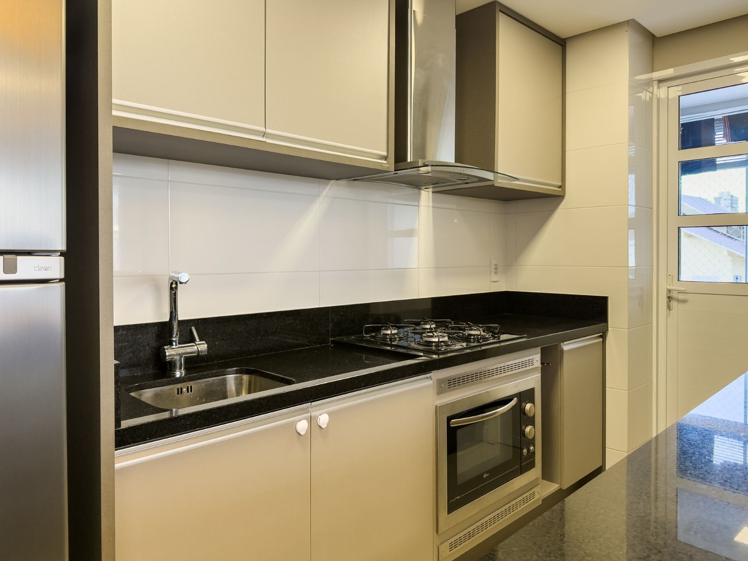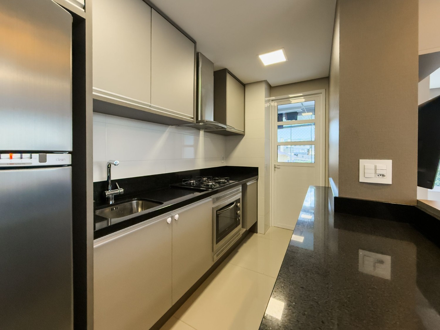 Sala de estar, Sala de Jantar, 2 box de garagem, Churrasqueira, Sacada integrada, Piso laminado