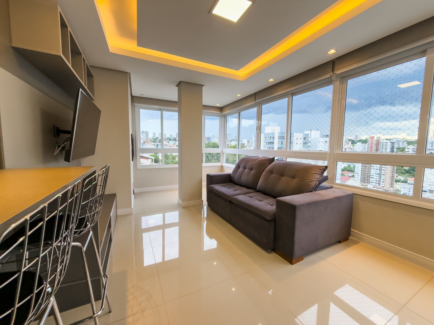 Descrição › APARTAMENTO MOBILIADO NO SÃO FRANCISCO, EM BENTO GONÇALVES! COM VAGA DUPLA DE GARAGEM E SACADA INTEGRADA.