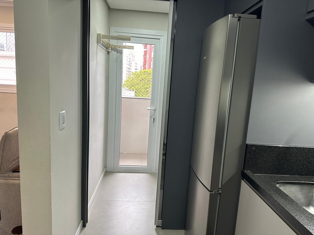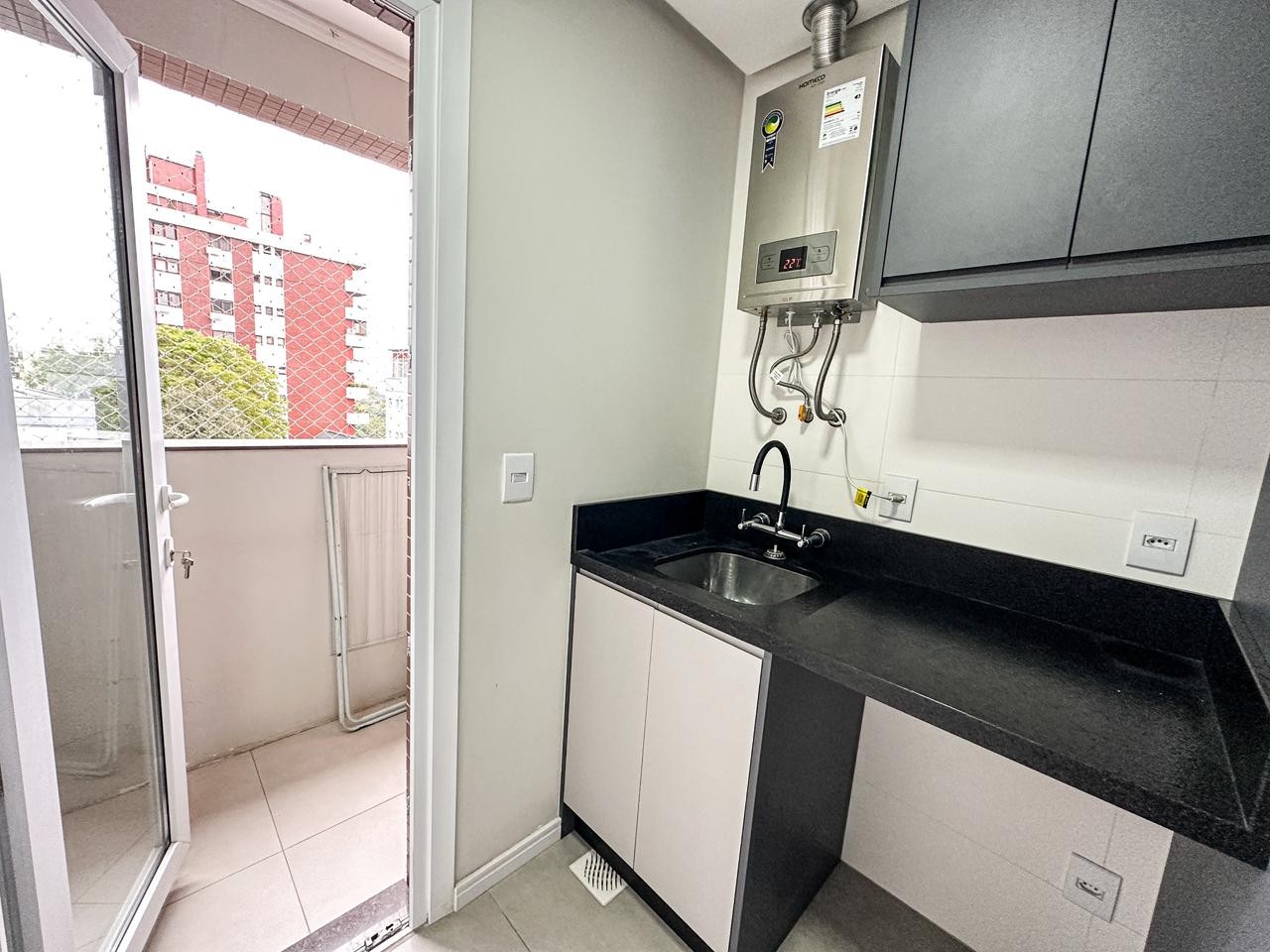 Uma cozinha bem equipada com armários embutidos. Desfrute da comodidade de uma lavanderia além de uma charmosa sacada.