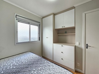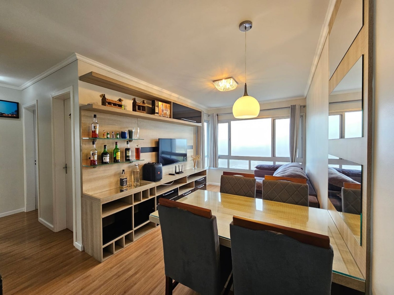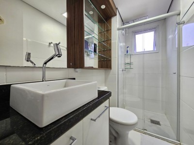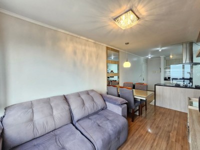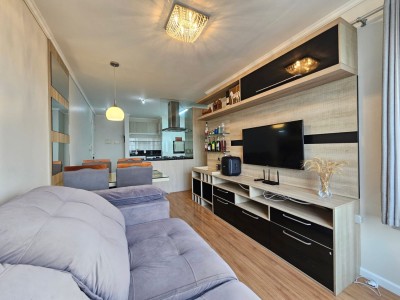 Composto por: 02 dormitórios, sala de estar e jantar com sacada integrada, cozinha com bancada de apoio e churrasqueira, área de serviço com separação, banheiro social e 01 box de garagem Coberto!