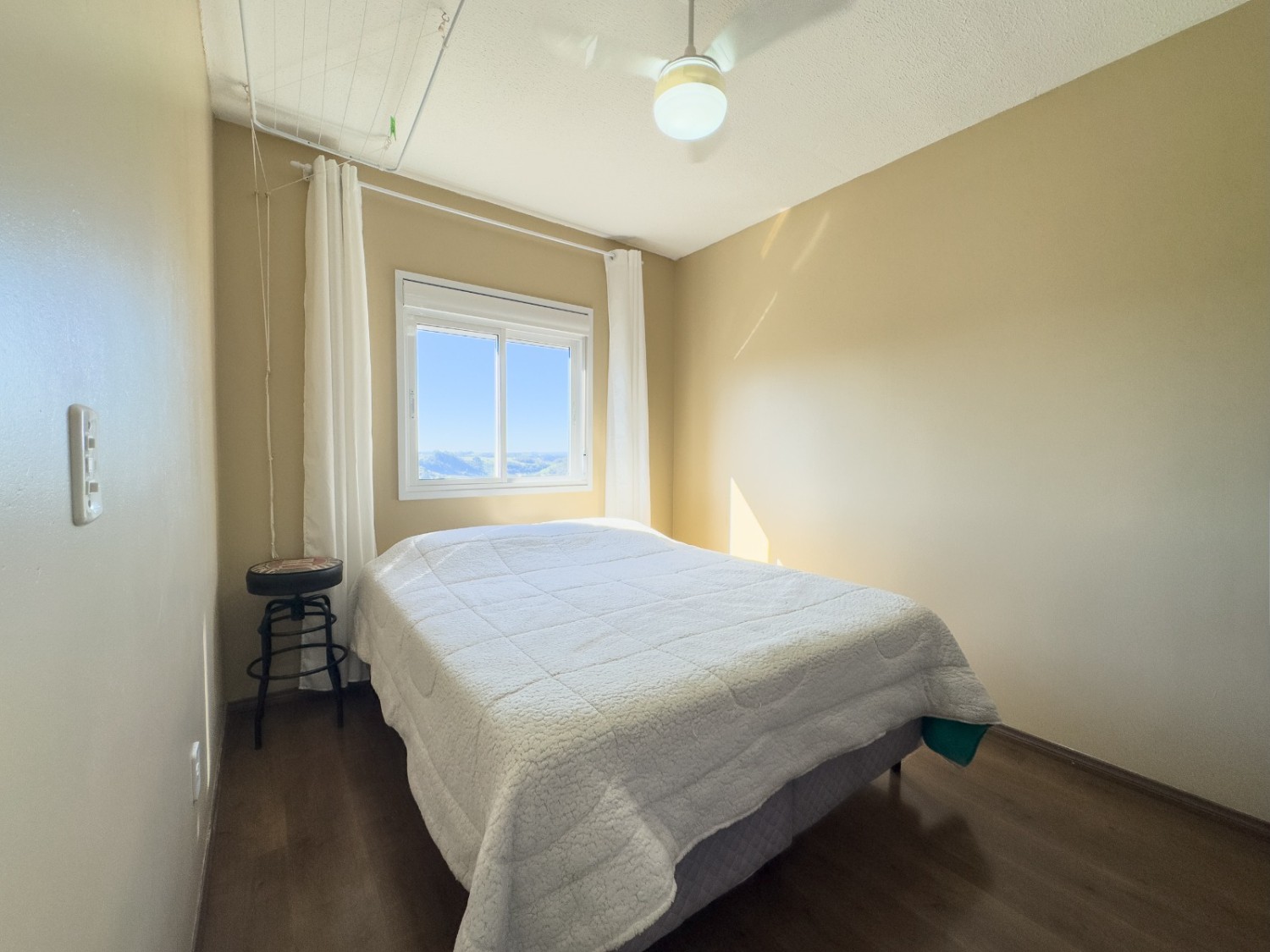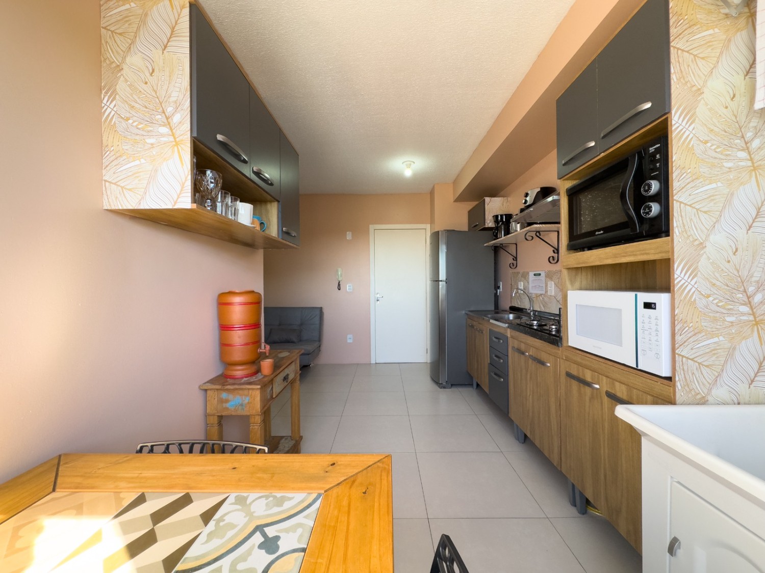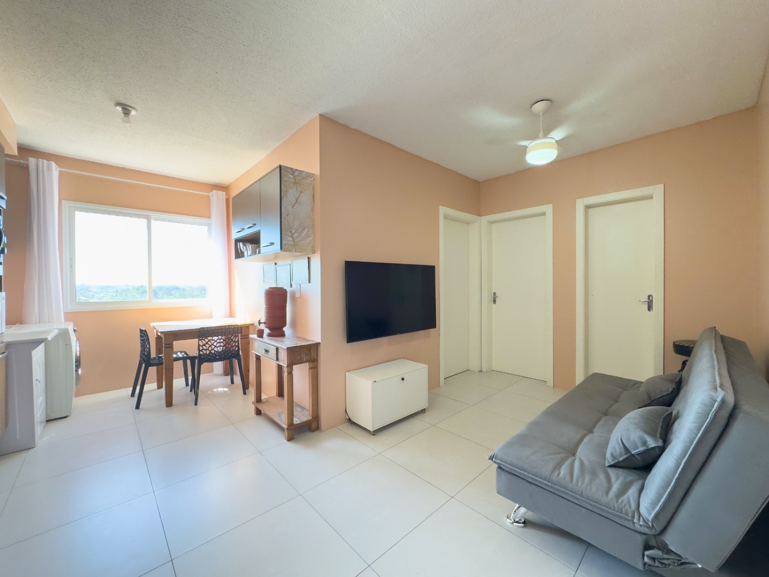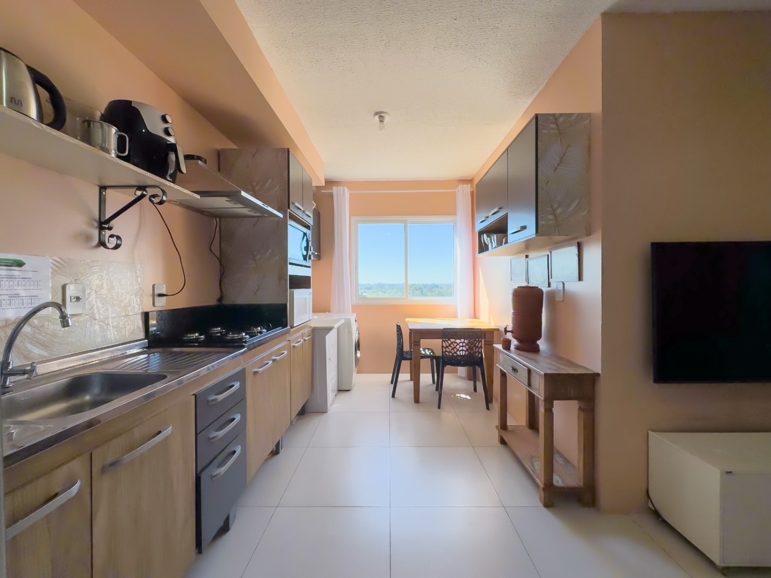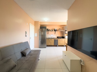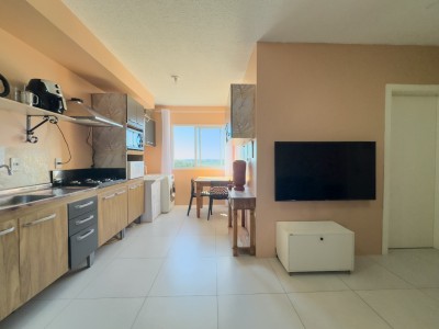 **Ficam inclusos os móveis da cozinha, cooktop , mesa de jantar, ventiladores de teto, no quarto um roupeiro, e banheiro completo e ainda conta com uma vaga de garagem coberta.