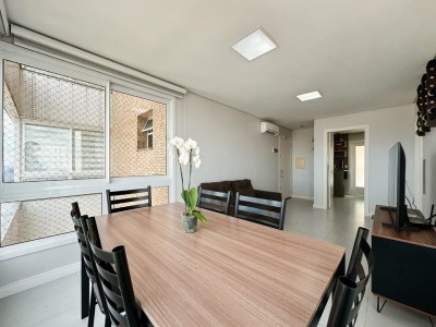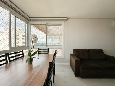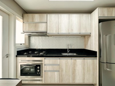 Área privativa de 80m², distribuídos em 02 dormitórios, sendo 01 suíte com sacada aberta. Sala de estar e jantar integradas. Banheiro social, área de serviço separada. Cozinha com armários planejados, churrasqueira.