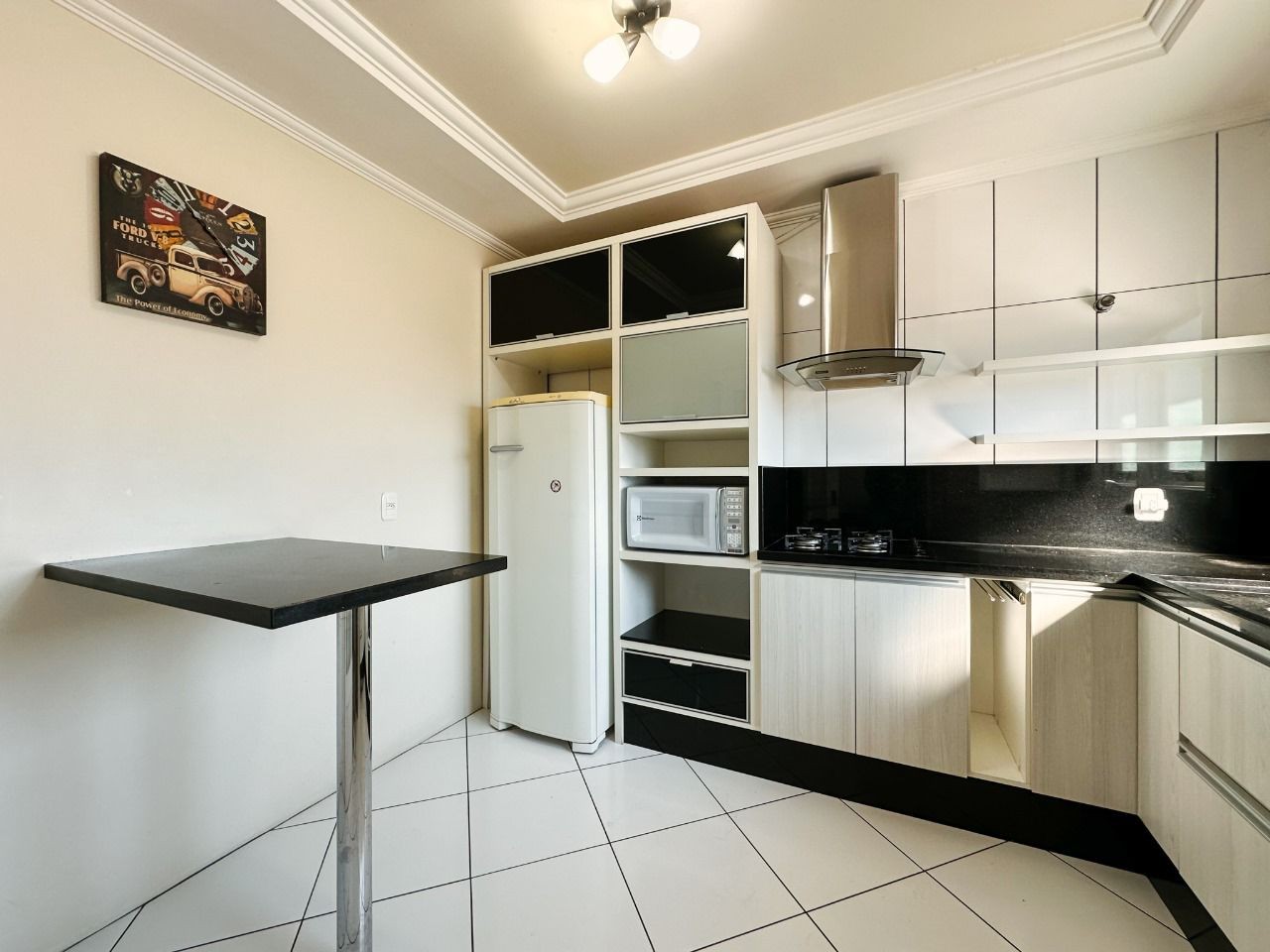 Distribuídos em cozinha e lavanderia, sala de estar com sacada integrada, 2 quartos; o de casal com sacada fechada, banheiro social e 1 vaga de garagem. Nesse valor, estão inclusos os móveis fixos da cozinha, quartos, sala de estar/jantar, sofá, lareira, banheiro completo, persianas e toda iluminação dos ambientes.