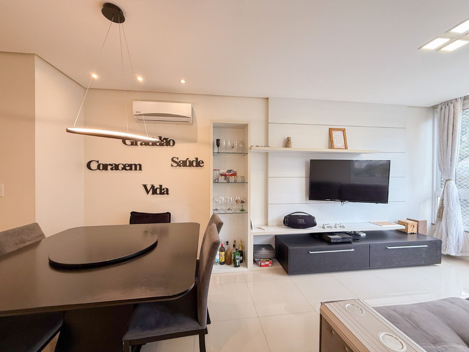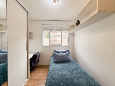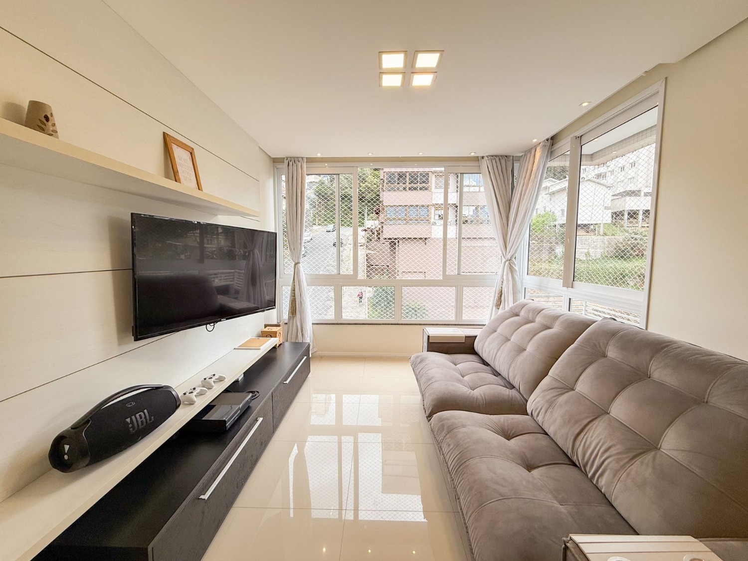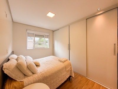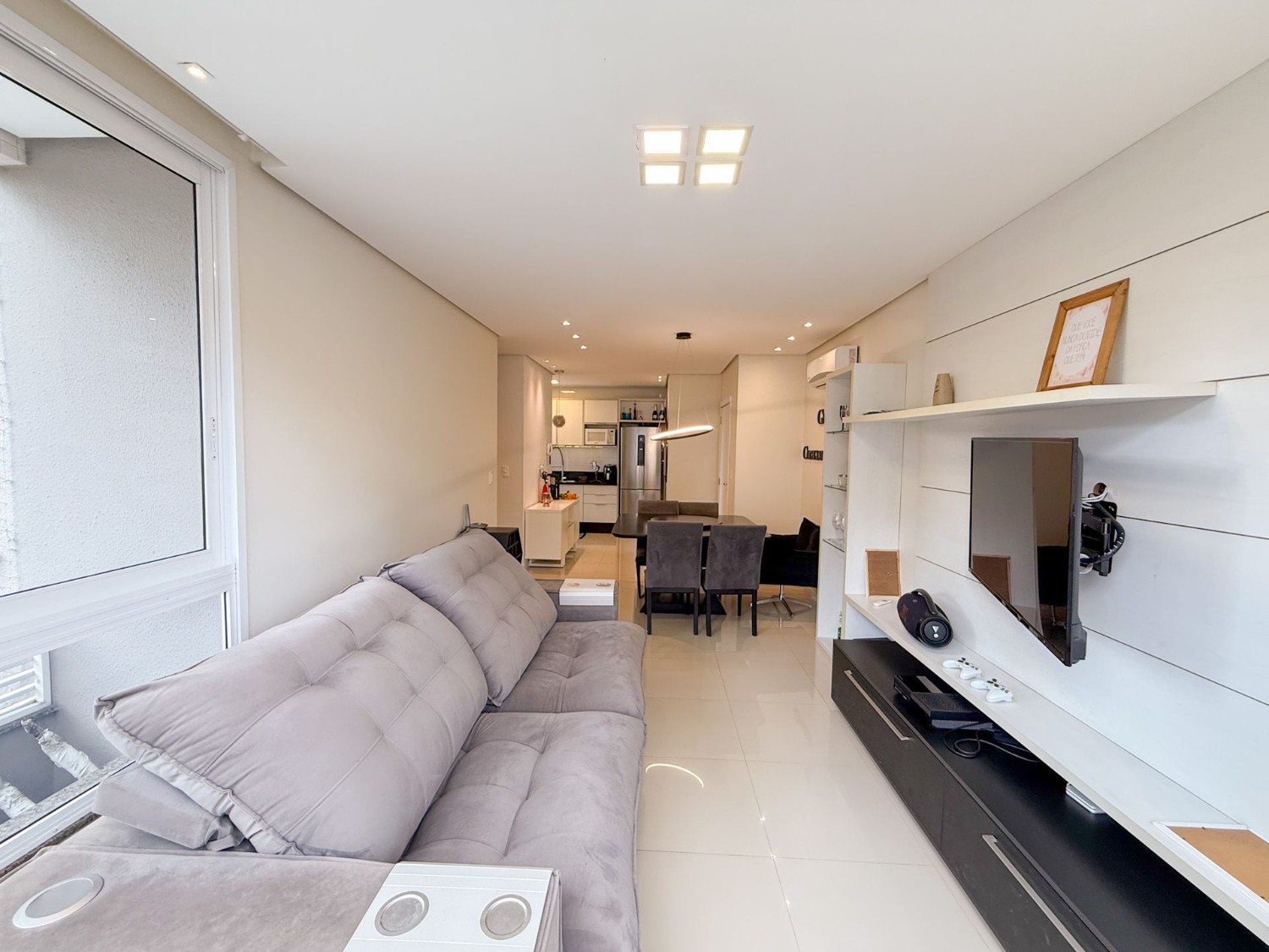 Dois dormitórios (sendo uma suíte), 76,62m² privativos, sacada fechada, churrasqueira, área de serviço separada- Box duplo de garagem + depósito