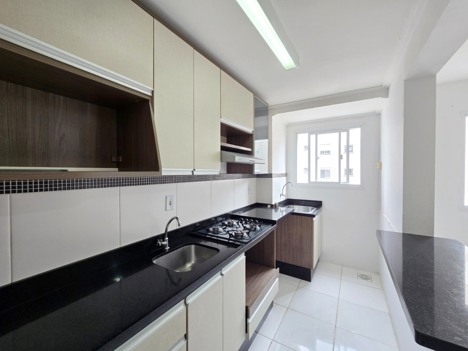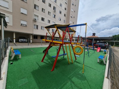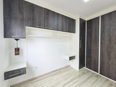 Composto por 02 dormitórios, sala, cozinha, área de serviço e banheiro social. Laminado nos dormitórios e piso cerâmico nas áreas úmidas.