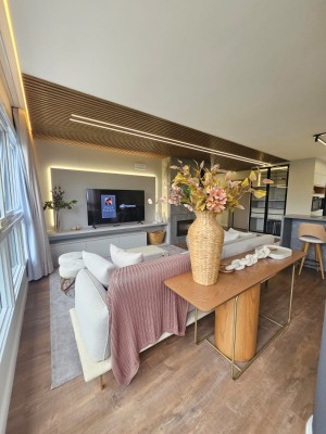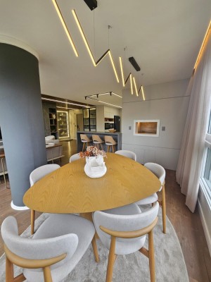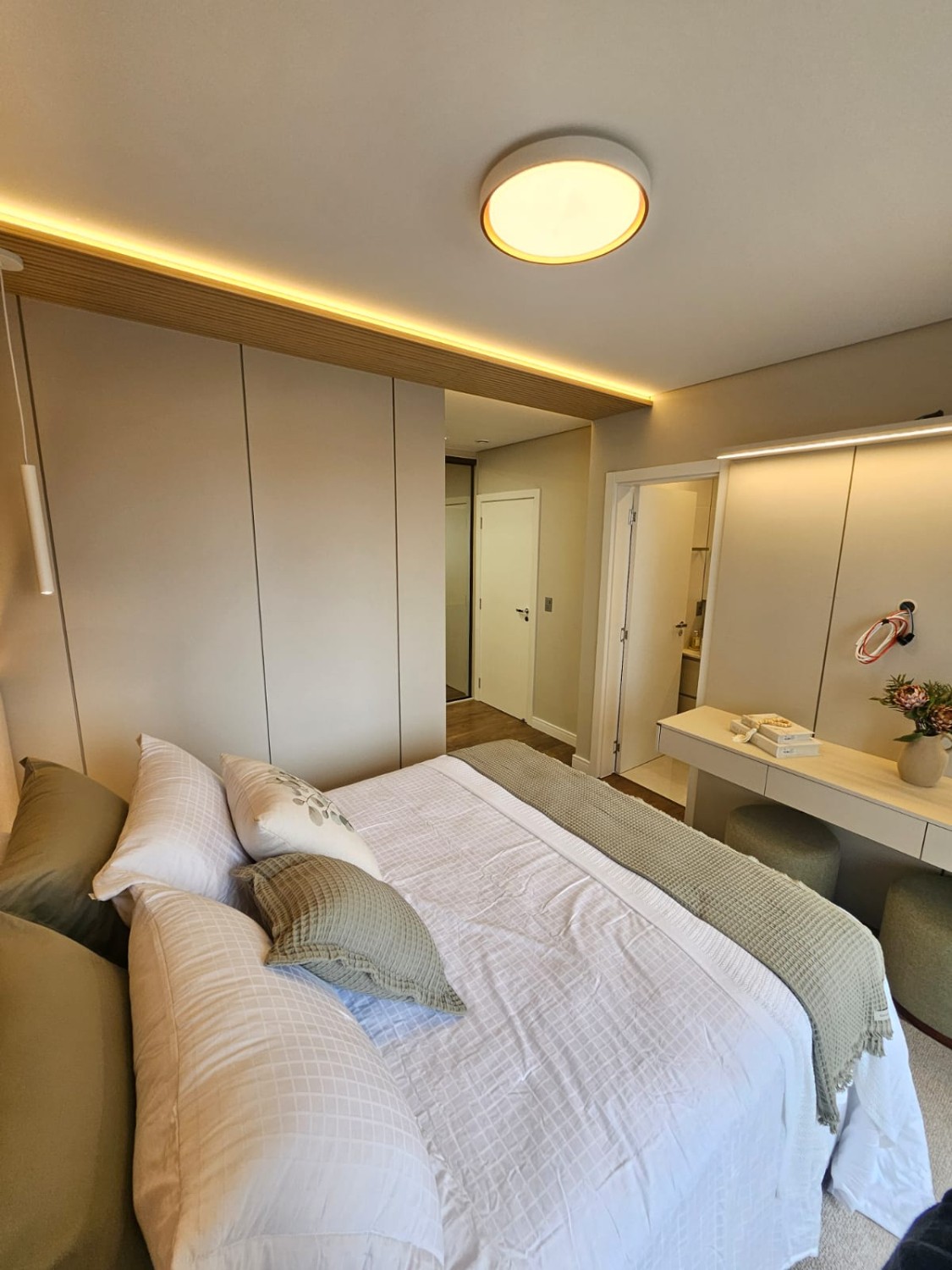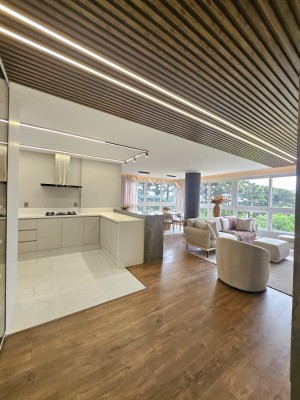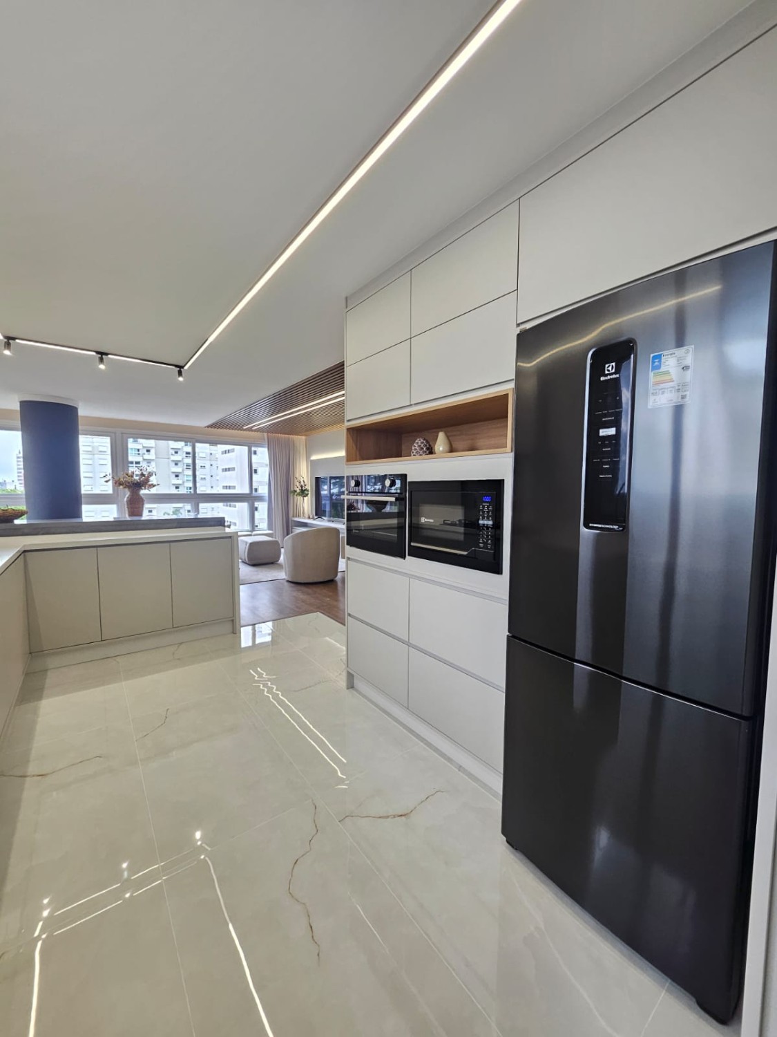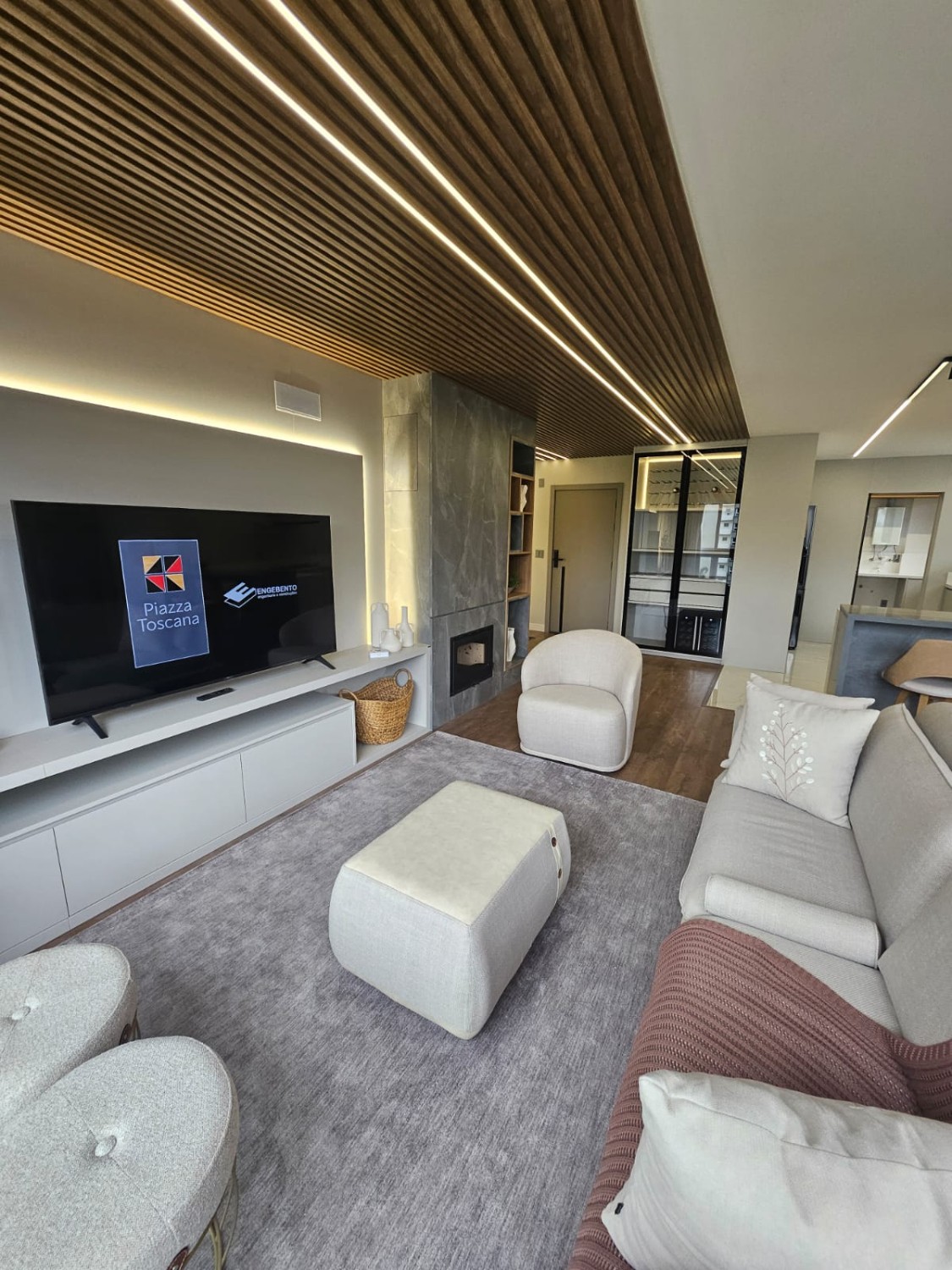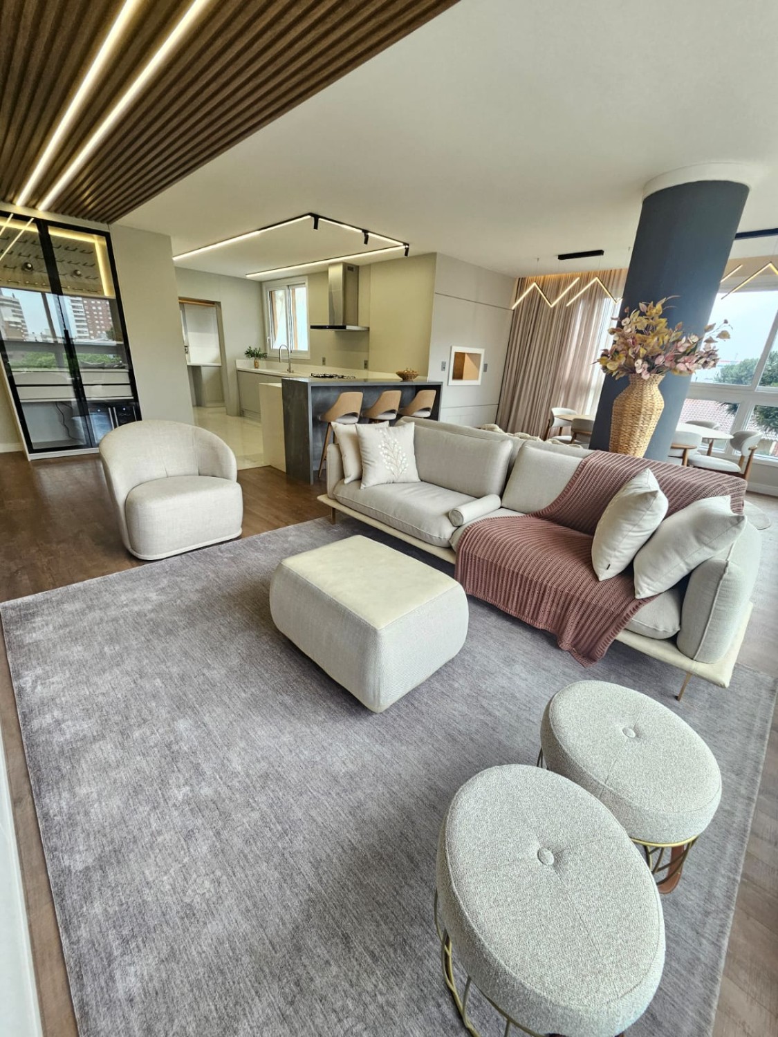 Empreendimento em construção, com previsão de entrega para Junho 2026, com incríveis 143,50 m² de área privativa. Composto por 03 dormitórios, sendo 03 suítes, 01 lavabo, sala com sacada integrada e vista panorâmica, living integrado com lareira. Cozinha ampla e com móveis e eletros de altíssimo padrão de qualidade. Apartamento totalmentemobiliadoe equipado, decoração moderna. 02 vagas amplas de garagem e depósito.