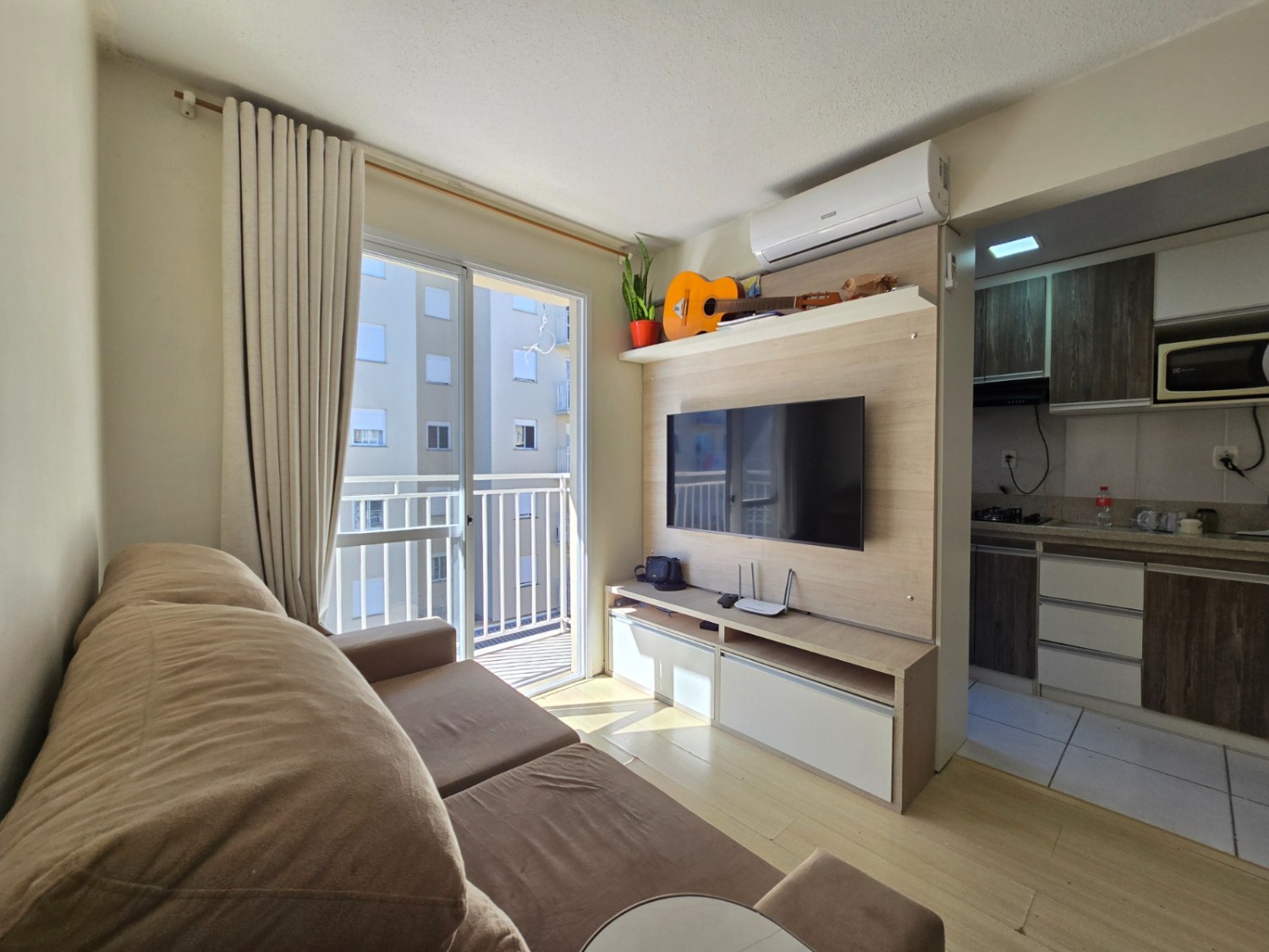 2 dormitórios, 1 banheiro social, Sala Estar com sacada , Sacada Aberta com sol da manhã, Cozinha e área de serviço integrada. Ampla sala para dois ambientes. 1 vaga de garagem coberta