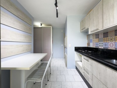 Apartamento semi mobiliado à venda no bairro São João em Bento Gonçalves, com 49 m² privativos, o imóvel conta com 2 quartos, cozinha, área de serviço, sala de estar com sacada integrada, banheiro social e churrasqueira.