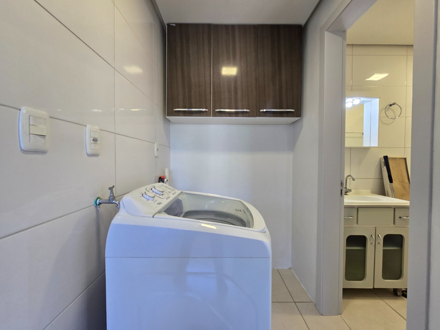 Cozinha mobiliada, área de serviço separada, banheiro social e 01 box de garagem coberto.