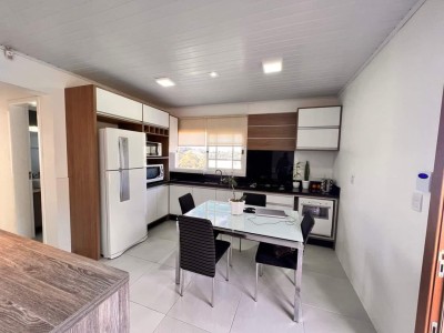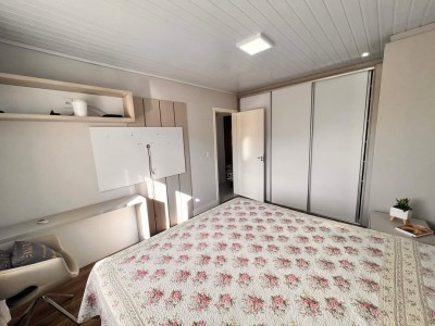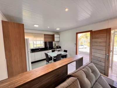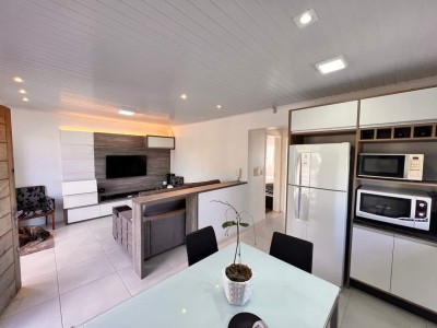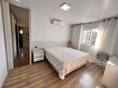 Casa de 2 pisos composta por 2 quartos amplos (piso laminado), sala e cozinha integradas (piso porcelanato), com ar condicionado no quarto principal, Banheiro.