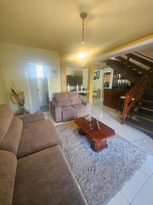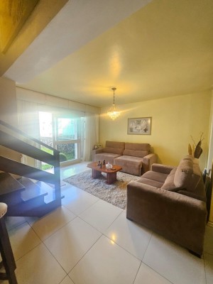 Financiável! Residência de dois pavimentos, com área privativa de 157m², com 03 dormitórios, sendo 1 suíte com banheira e sacada aberta, 02 salas de estar, cozinha separada, 02 banheiros sociais, espaço externo com churrasqueira e pátio para até 02 veículos.