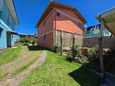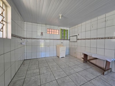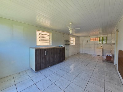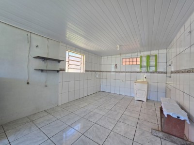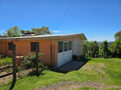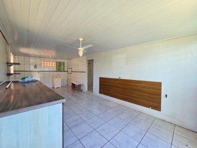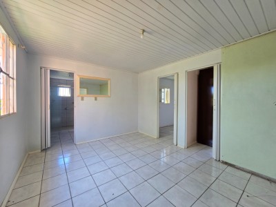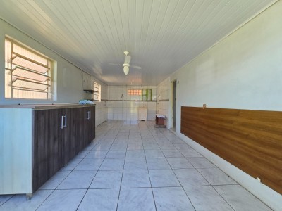 Casa de alvenaria composta por 2 dormitórios, sala de estar, cozinha e jantar integradas, banheiro social, área com churrasqueira e ampla sobra de pátio.
