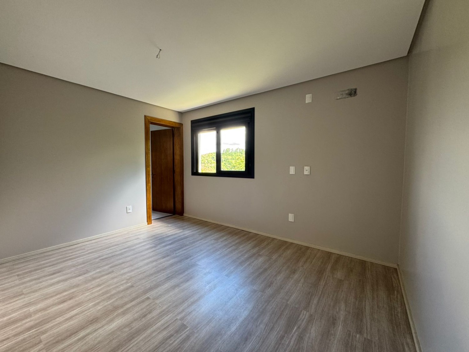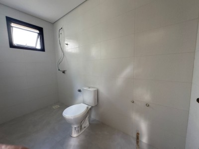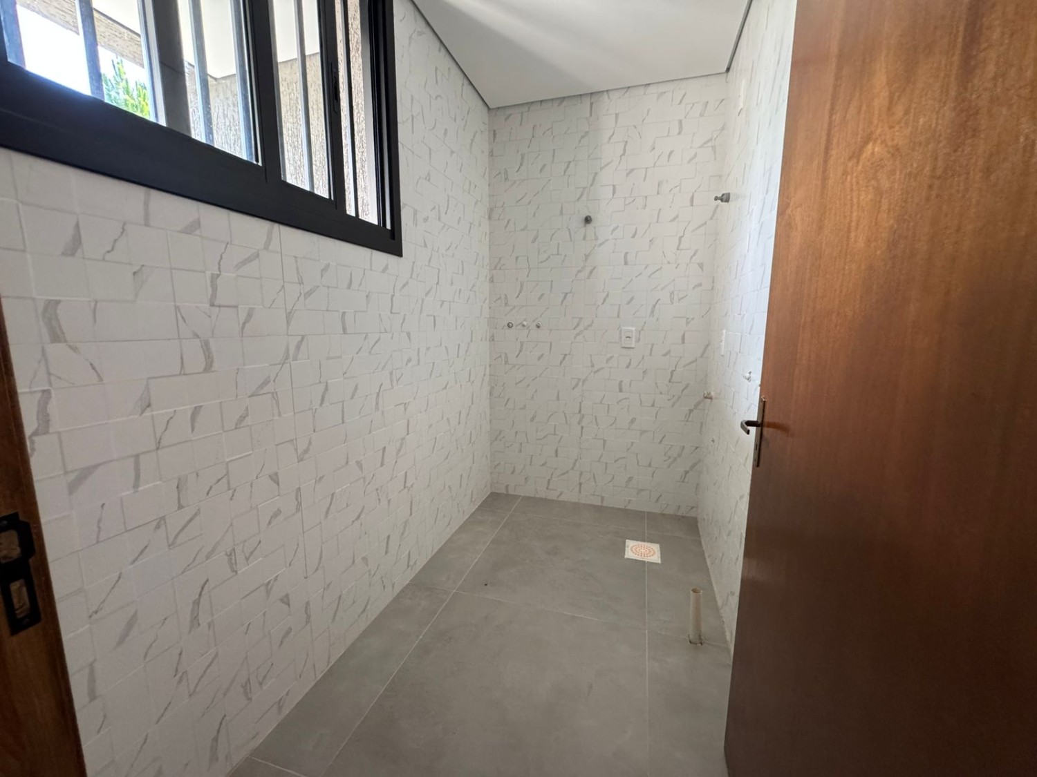 Com 142,43 m² de área construída em terreno de 240 m² (10 x 24), a casa possui frente norte, garantindo sol durante todo o dia. Os acabamentos incluem porcelanato e piso laminado, rebaixo em gesso em todos os ambientes, esperas para ar-condicionado split na sala e dormitórios, além de espera para aquecimento a gás (Junker).