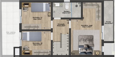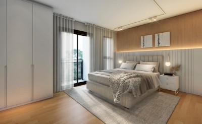 Acabamentos em rebaixe de gesso, piso porcelanato e laminado, churrasqueira revestida, medidores individuais, massa corrida e esperas.
