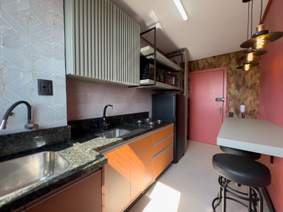 O imóvel está totalmente mobiliado, com móveis planejados em todos os ambientes. O banheiro é amplo e conta com ventilação natural. Situado em andar alto, o studio recebe sol da manhã, tornando os ambientes bem iluminados.