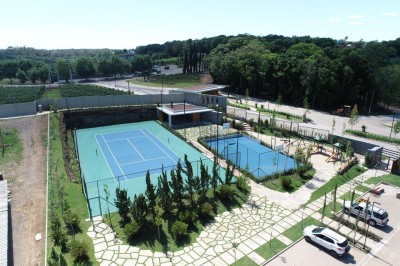 Área social com quiosque, quadra poliesportiva, quadra de tênis, parque infantil e pet place.