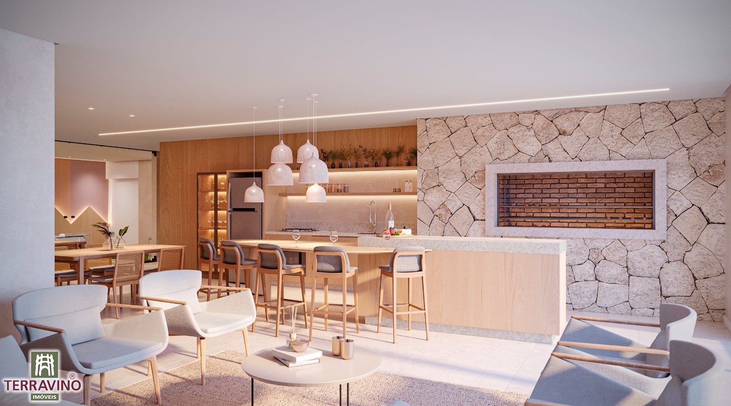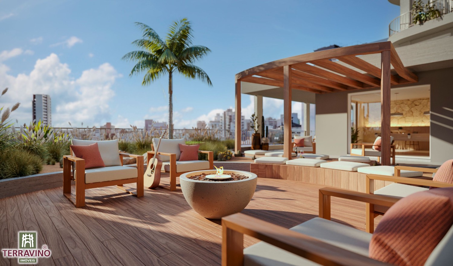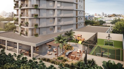 Apartamentos de 03 dormitórios, sendo as 3 suíte, Living e cozinha integrados, proporcionando maior área de convivência, Piso porcelanato nas áreas sociais e banho e piso laminado nos dormitórios, Rebaixo em gesso liso, Acabamento em massa corrida nos ambientes, Amplas aberturas em PVC, com opção de vidro duplo, Esperas para ar condicionado Split no living e dormitórios, Sacada aberta com churrasqueira, Reutilização da água da chuva para irrigação dos jardins, Áreas sociais entregues mobiliadas.