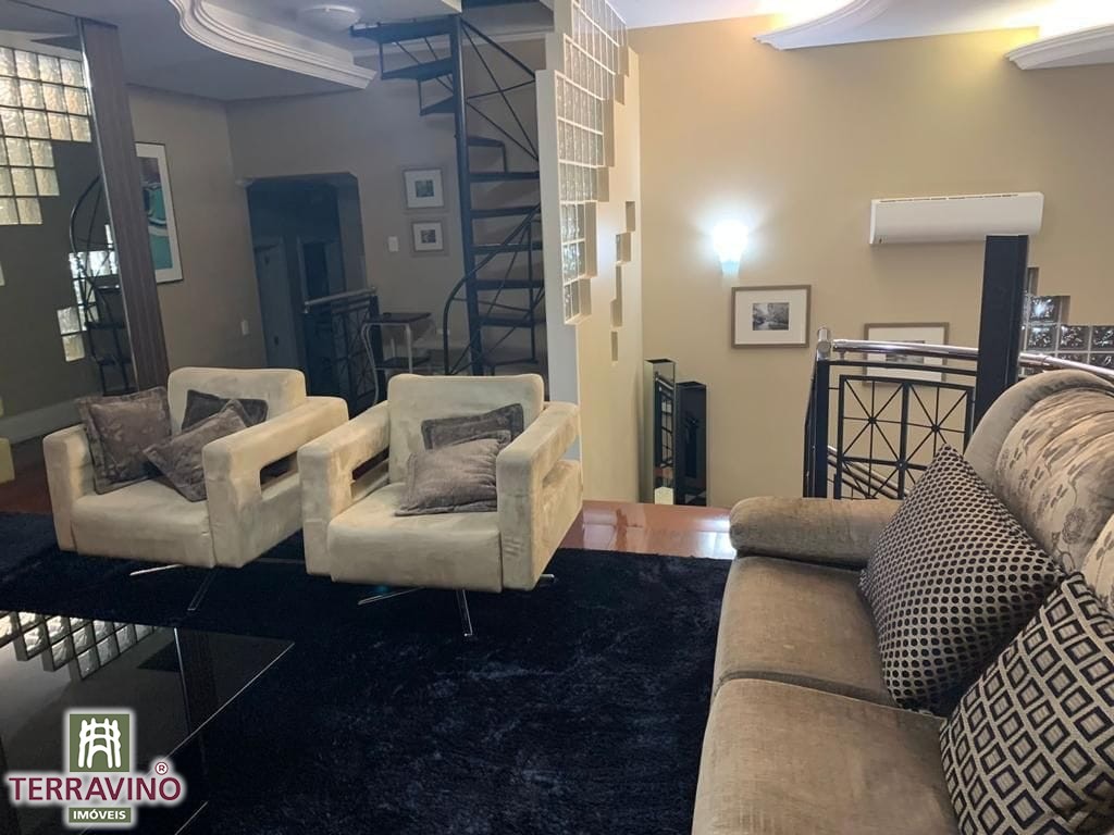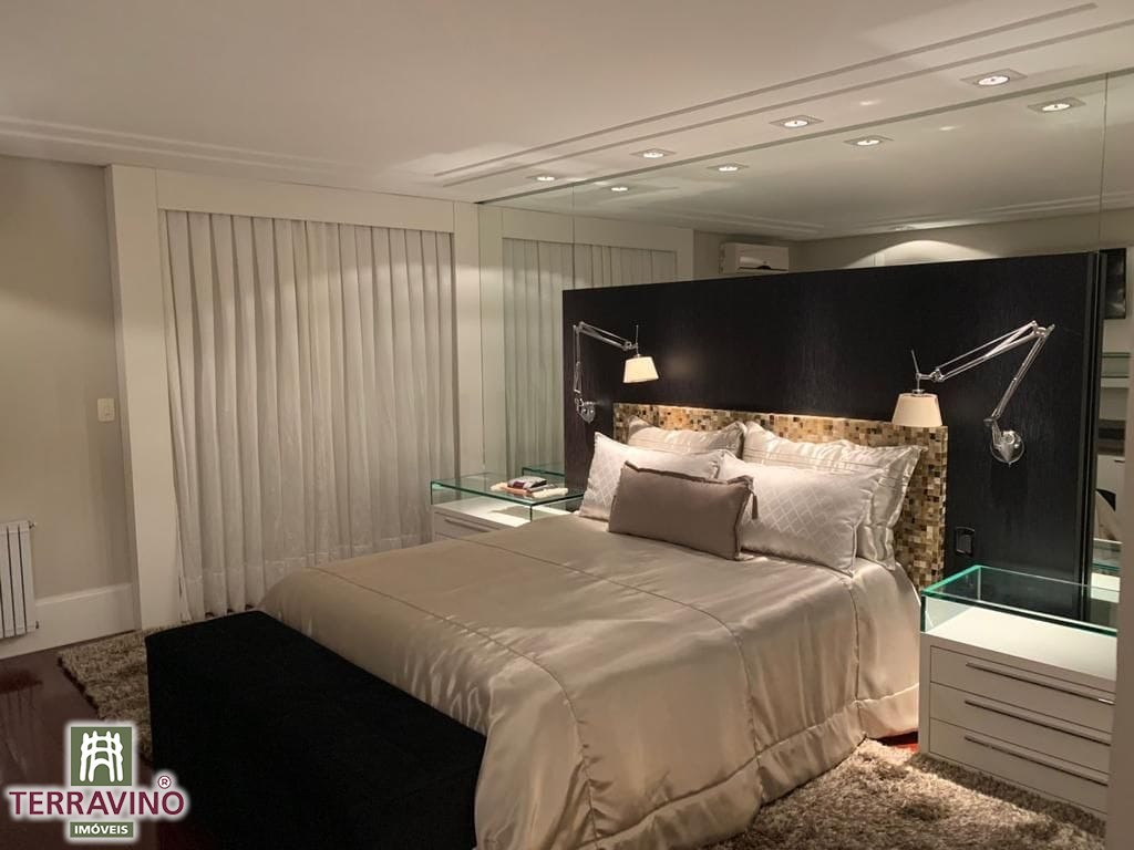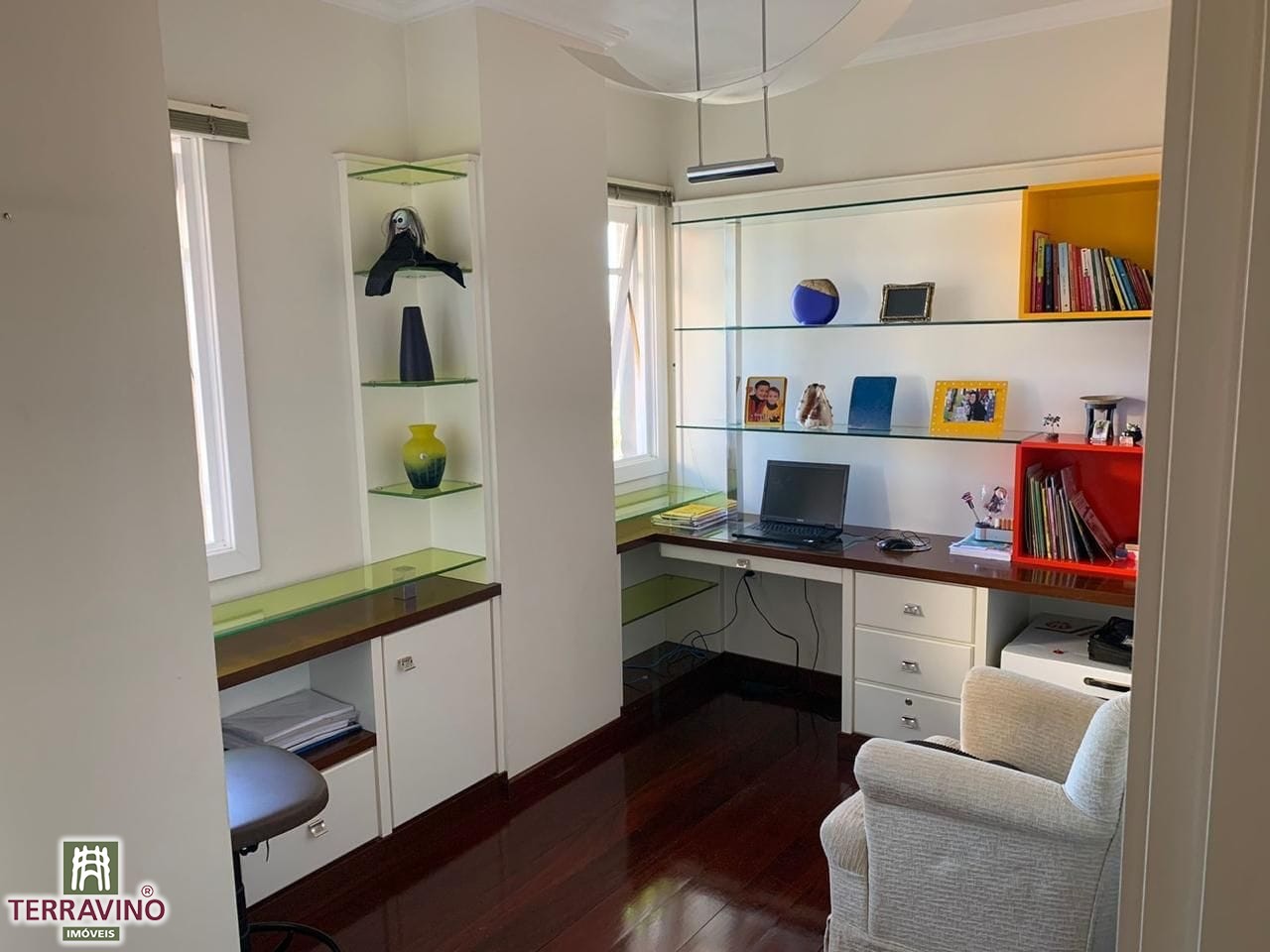 Pavimento Superior composto por: 01 suíte máster com closet e varanda, 01 suíte com varanda, 01 dormitório com varanda, 01 dormitório/biblioteca, circulação, banheiro social e sala de tv.
