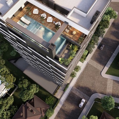 Um dos diferenciais do Lumme será a cobertura rooftop, que proporciona novos ângulos para apreciar Torres, sendo um espaço ideal para relaxamento e convívio social, com piscina de borda infinita, salão de festas, lounge externo com lareira de chão, espaço kids e espaço fitness.